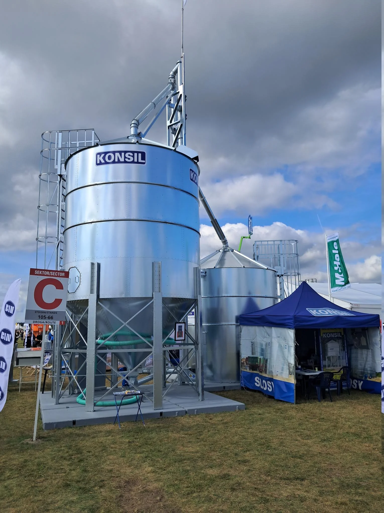 Jak co roku, stanowisko KONSILa wraz z firmą BIN, znajdowało się w znakomitym punkcie, w samym sercu tzw. alei zbożowej. W tym roku, zaprezentowaliśmy silos lejowy KONSIL40/4 o ładowności 44 ton, który jest najmniejszym, produkowanym przez nas, silosem zbożowym lejowym. Silos ten wyposażony był w system kanałów napowietrzających oraz drabinę zewnętrzną. A odwiedzający nasze stanowisko Goście, mogli również przyjrzeć się, w jaki sposób można rozwiązać załadunek i rozładunek za pomocą przenośnika ślimakowego.