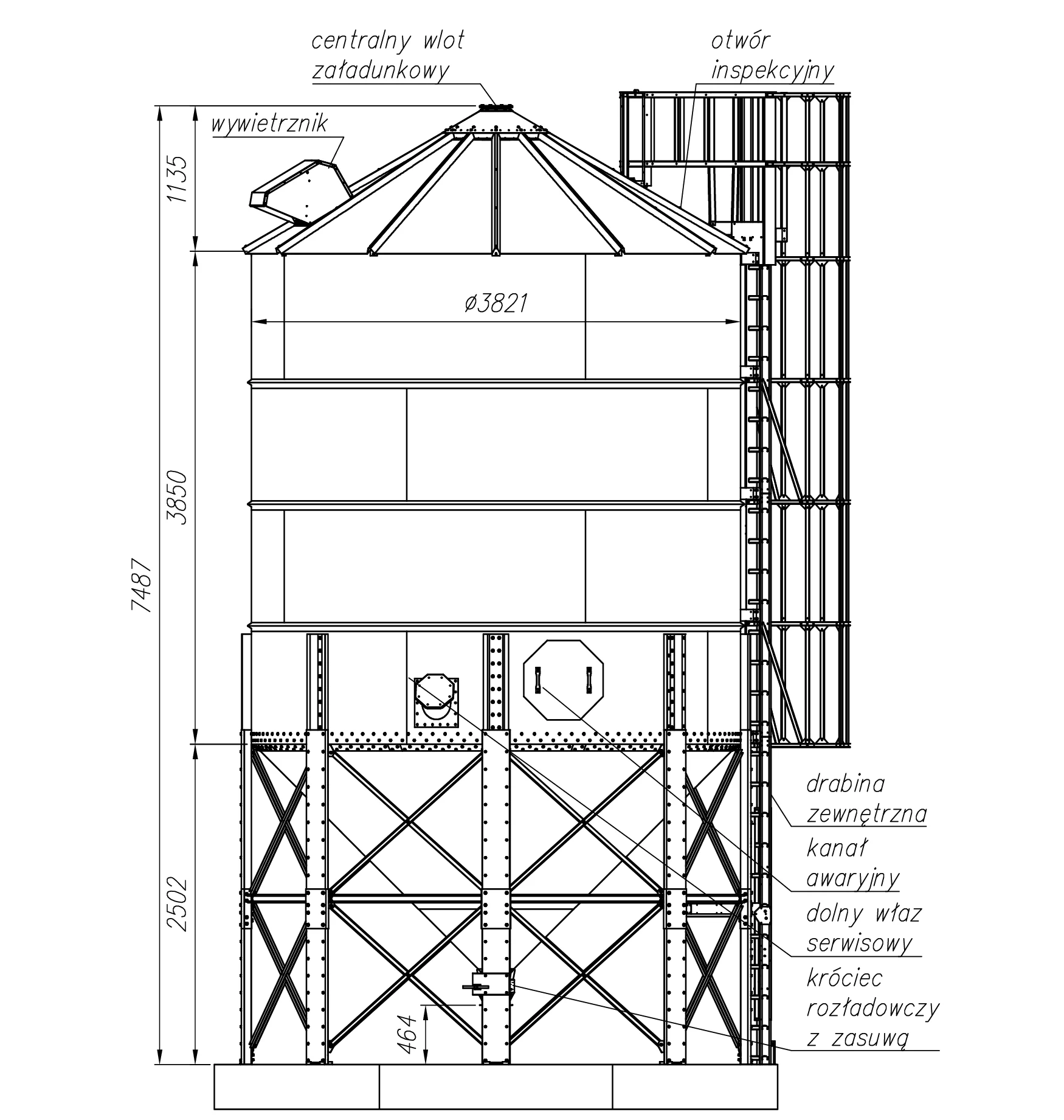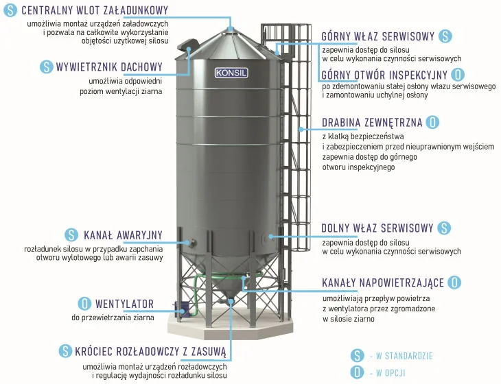 Silosy typu KONSIL40 o średnicy 3,82m i ładowności od 44t do 70t są przeznaczone do przechowywania ziarna. Dostępne są w czterech modelach: KONSIL40/4, KONSIL40/5, KONSIL40/6, KONSIL40/7.