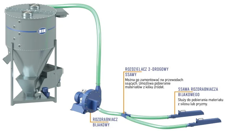 • Zastosowanie rozdzielaczy na przewodach ssących umożliwia pobieranie rozdrabnianego materiału kolejno z kilku źródeł.