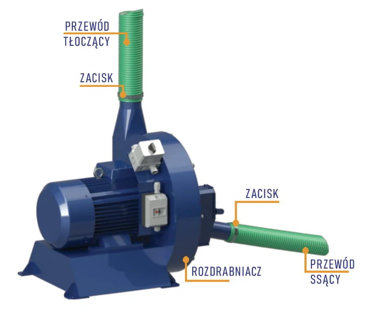 • Rozdrabniacz bijakowy ssąco-tłoczący służy do rozdrabniania ziarna zbóż i nasion roślin strączkowych.