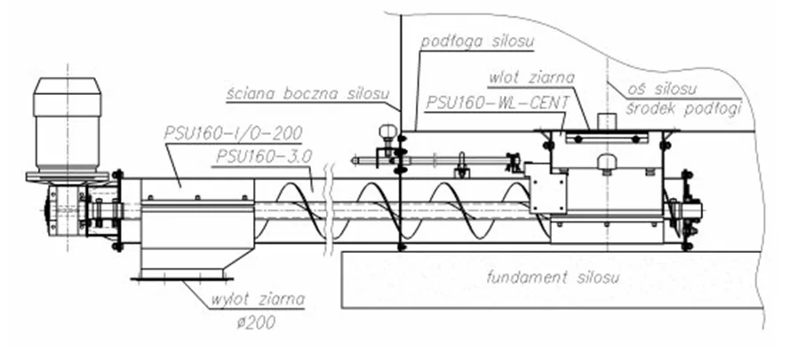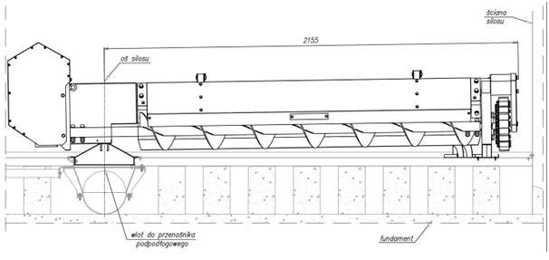 Sposób montażu PS160 jako przenośnik rozładowczy podpodłogowy w silosie typu BIN:
