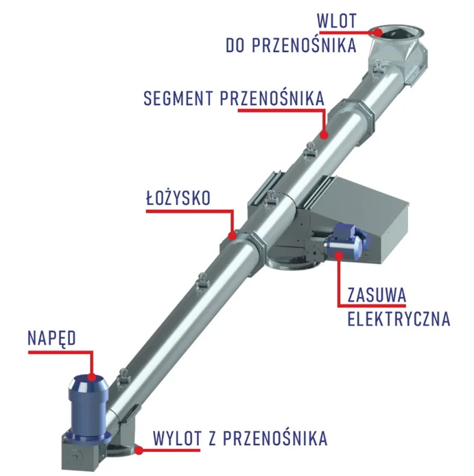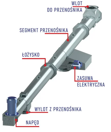 Przenośniki ślimakowe są przeznaczone do transportu ziarna zbóż, kukurydzy i nasion roślin oleistych.