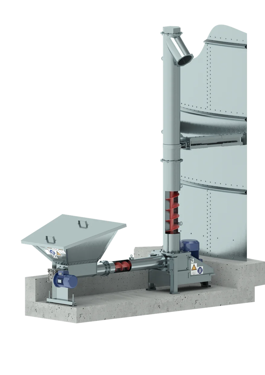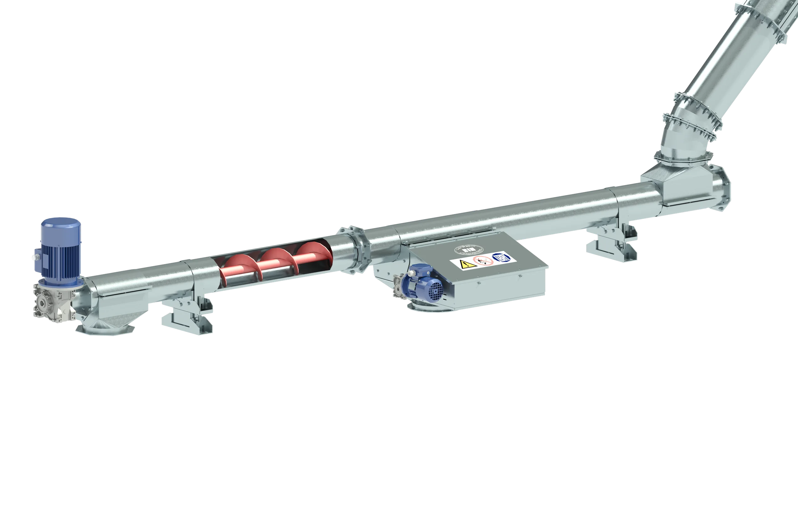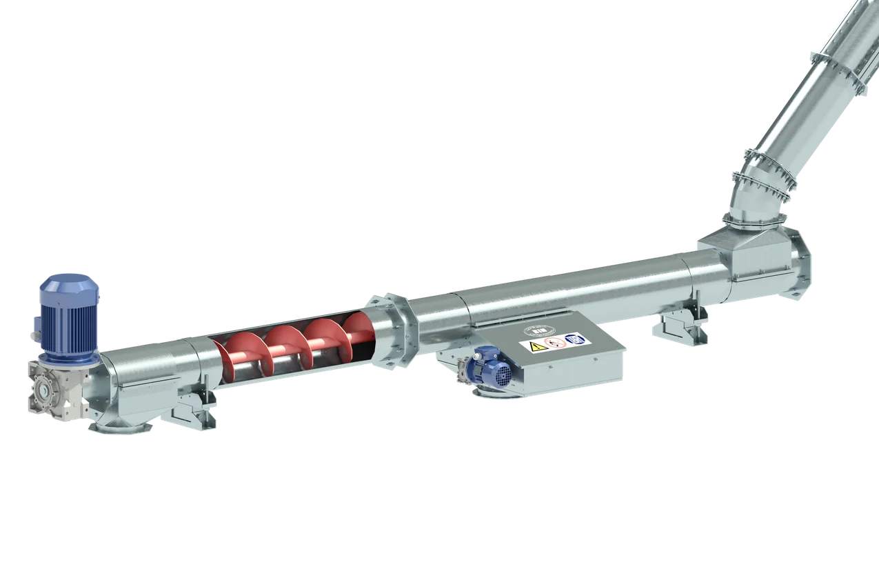 Przenośniki ślimakowe wewnętrzne zawsze współpracują z przenośnikami podłogowymi.