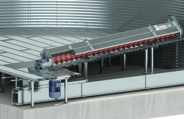 Przenośniki ślimakowe wewnętrzne umożliwiają rozładunek ziarna, które nie przedostało się do przenośnika podłogowego w sposób grawitacyjny. Zwykle jest to 15-20% ładowności silosu. Przenośnik PSW transportuje ziarno wzdłuż promienia silosu do środka, gdzie znajduje się wlot do przenośnika podłogowego. Jednocześnie przenośnik PSW obraca się wokół osi silosu zgodnie z kierunkiem ruchu wskazówek zegara (patrząc z góry na podłogę). W ten sposób następuje rozładunek pozostałego w silosie ziarna.